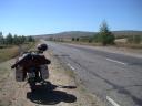 | Es wird gegen Mittag bis ich aus Chita raus bin. Der Bankomat war nicht einfach zu finden, aber auch im tiefen Sibirien kommt man mit der ec-Karte an Bares. Das alte und von der Reparatur verschmutzte Öl hätte ich eigentlich auch noch wechseln wollen, aber wo die Russen Öl wechseln kann ich auch in Chita nicht ausfindig machen. Entweder man verkauft Öl oder hat eine Werkstatt, aber nicht beides zusammen. Also weiter mit dem alten Öl. Ich bin lange unterwegs und nicht sicher, ob ich auf der richtigen Strasse bin. Aber ich bin nicht mehr auf der gleichen Strasse unterwegs wie beim reinfahren nach Chita. Erst viel später ist dann Ulan-Ude angeschrieben, ich bin richtig. Die Landschaft bleibt die gleiche, es ist flach, trocken und braun. Ein paar Viecher weiden und stehen ab und zu auf der Strasse rum. Und dann und wann hat immer wieder kleine Siedlungen entlang der Strasse die mir in der weiten Landschaft schon fast etwas verloren vorkommen. Es geht gut vorwärts heute, der Asphalt ist zwar nicht fein, aber 450km sind es heute schon gewesen. Das ist irgendwie beruhigend. Wenn es sein müsste, könnte man also in etwa zwei Wochen zu Hause sein. 250km vor Ulan-Ude stelle ich wieder das Zelt. Ganz so kalt wie vor Chita ist es nicht mehr. |